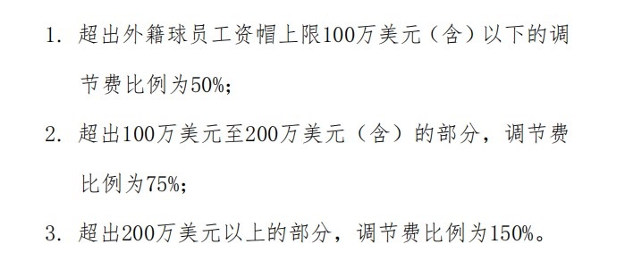 需说明的是,CBA外援工资帽属于软性帽,允许超额,超出部分需按规定缴纳调节费,机制类似于NBA奢侈税制度。具体缴纳规则如下: